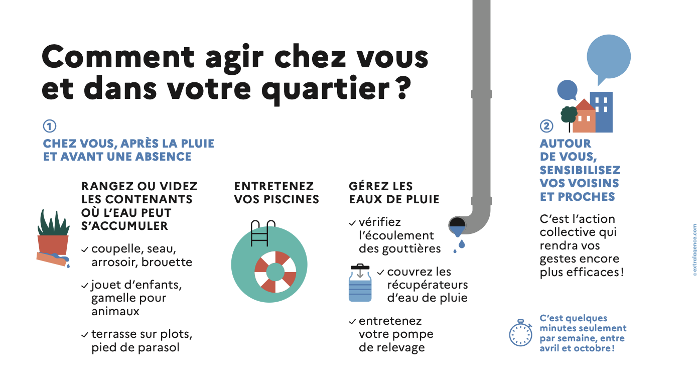 Le moustique tigre est implanté dans tous les départements de la région Auvergne-Rhône-Alpes. Huit habitants sur 10 y sont exposés. Au-delà des nuisances quotidiennes qu’il engendre, le moustique tigre est également vecteur de maladies et représente donc unenjeu de santé publique.